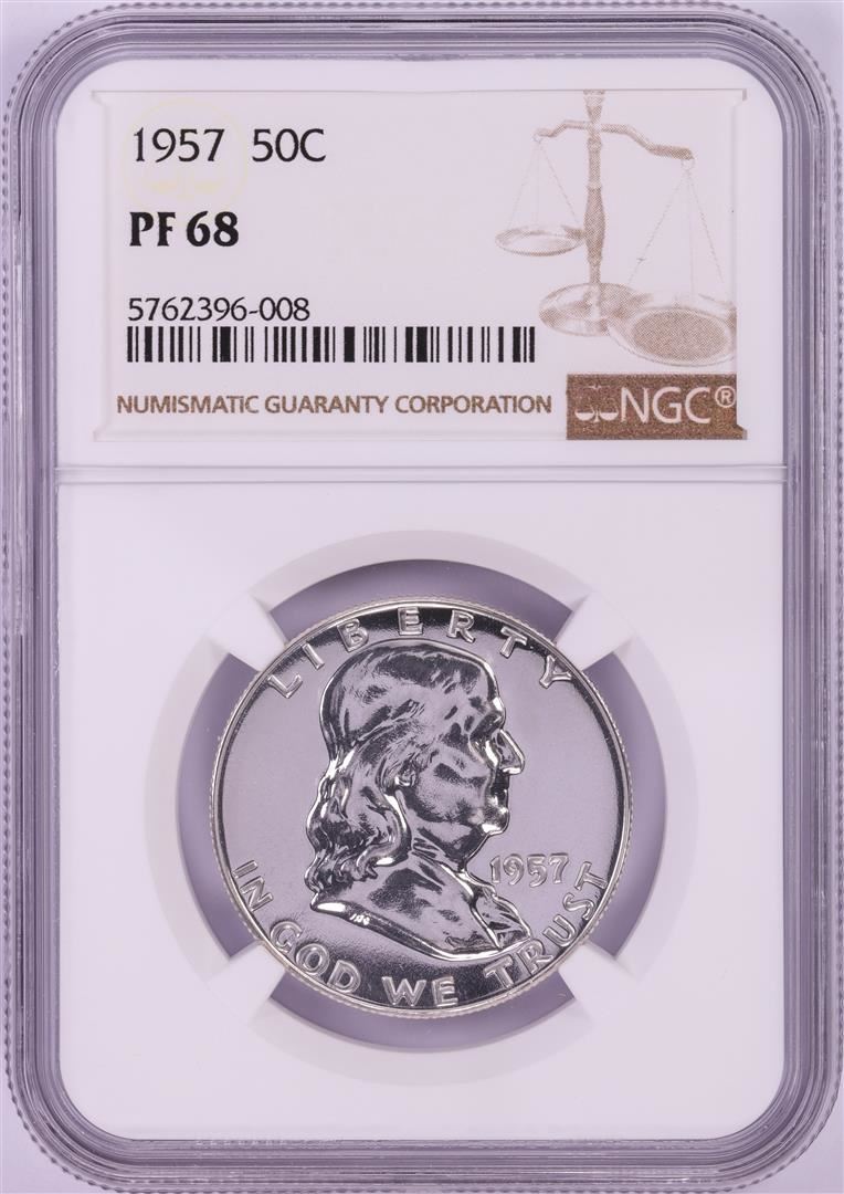 One 1957 Proof Franklin Half Dollar Coin NGC PF68. NGC Certified.