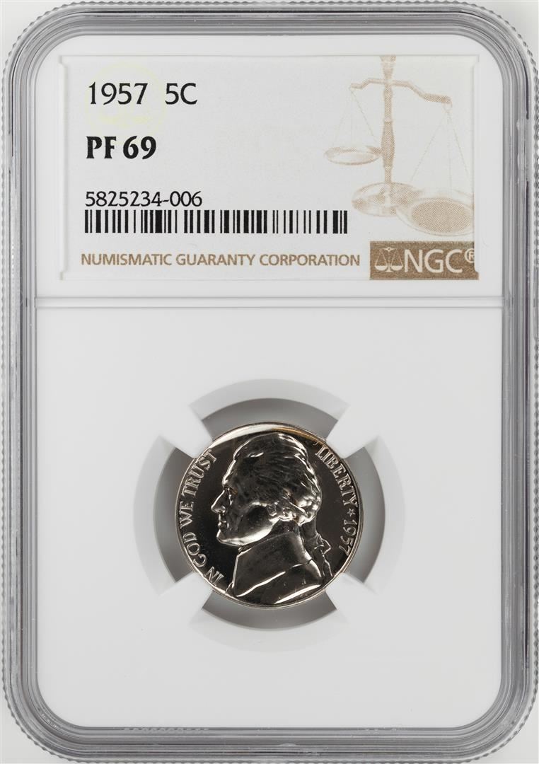 One 1957 Proof Jefferson Nickel Coin NGC PF69. NGC Certified.