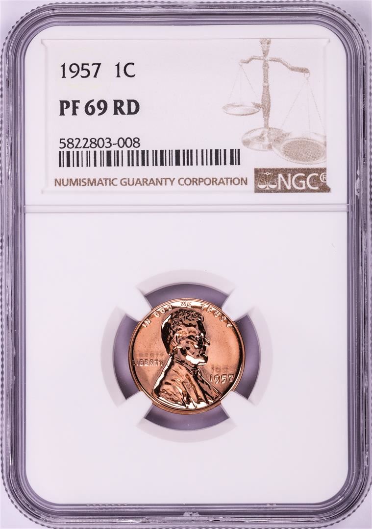 One 1957 Proof Lincoln Wheat Cent Coin NGC PF69RD. NGC Certified.