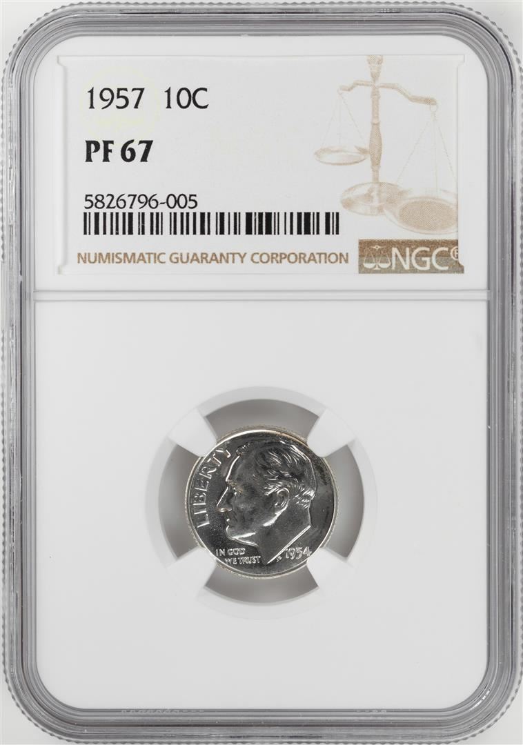 One 1957 Proof Roosevelt Dime Coin NGC PF67. NGC Certified.