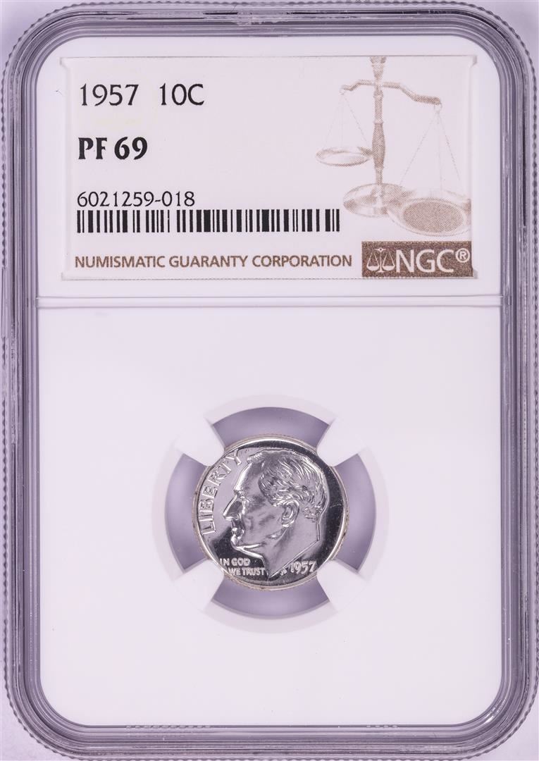 One 1957 Proof Roosevelt Dime Coin NGC PF69. NGC Certified.