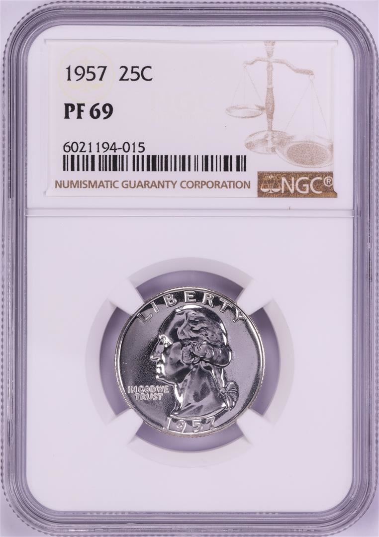 One 1957 Proof Washington Quarter Coin NGC PF69. NGC Certified.
