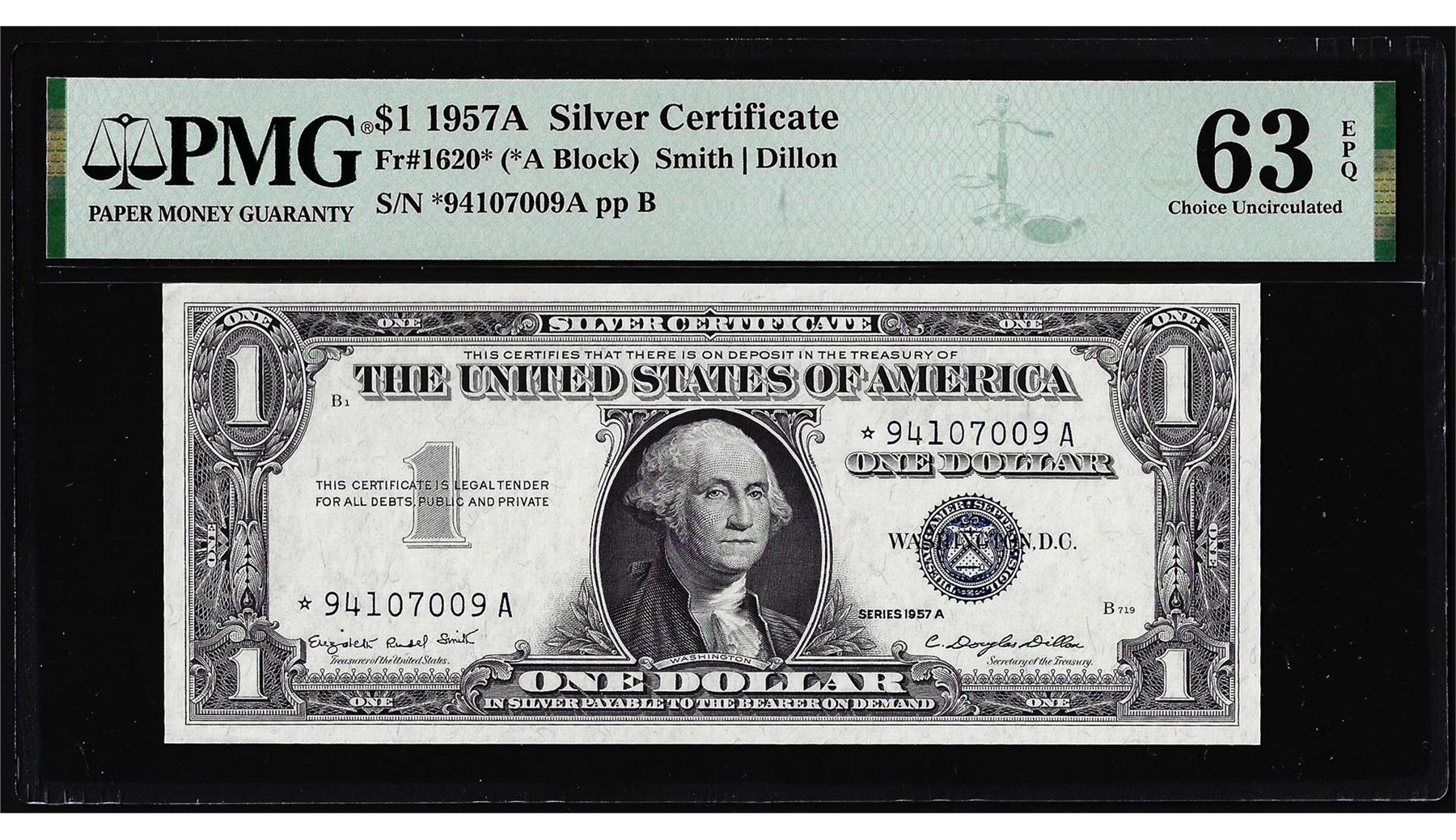 1957A $1 Silver Certificate STAR Note Fr.1620* PMG Choice Uncirculated 63EPQ