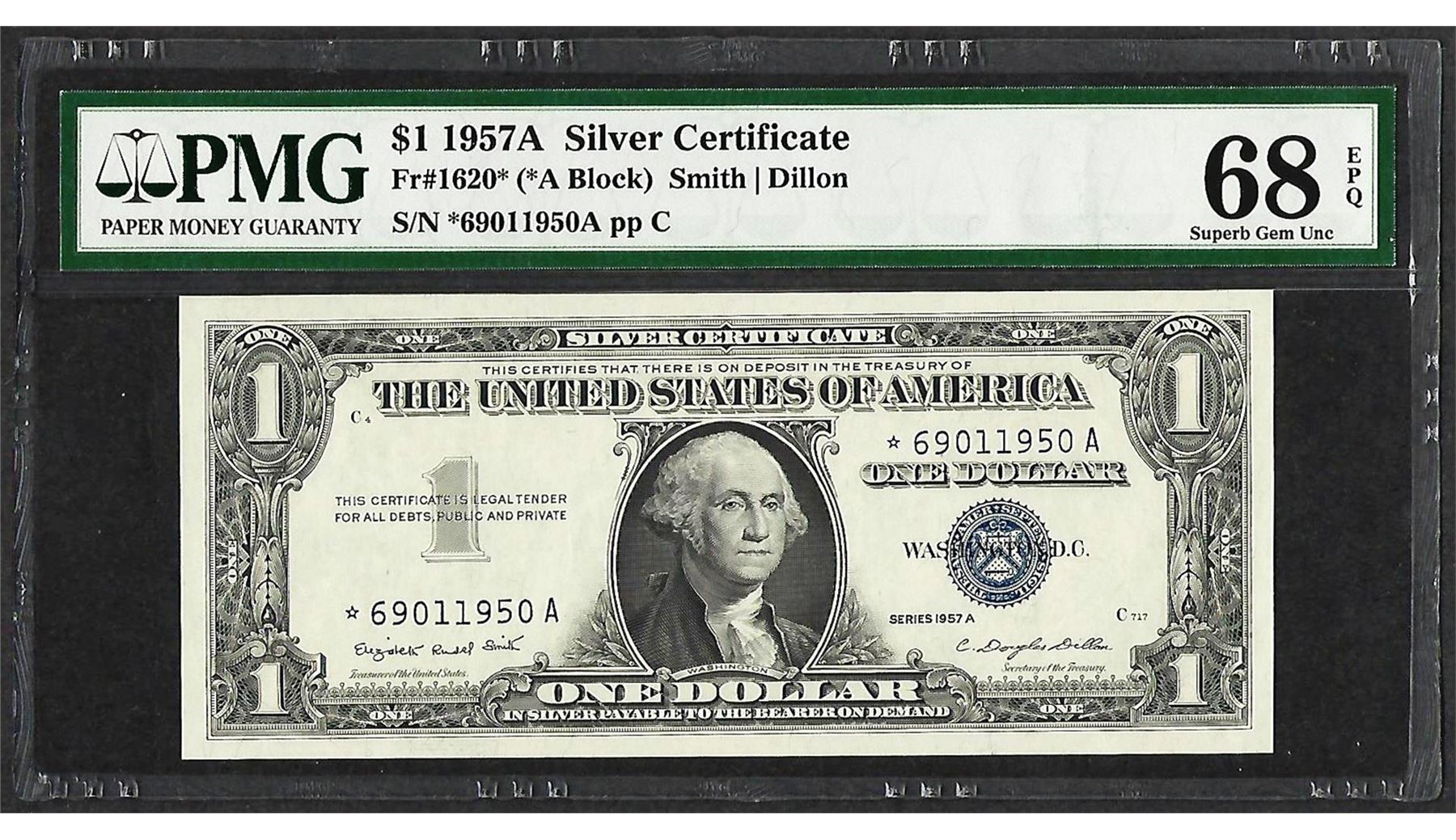 1957A $1 Silver Certificate STAR Note Fr.1620* PMG Superb Gem Uncirculated 68EPQ