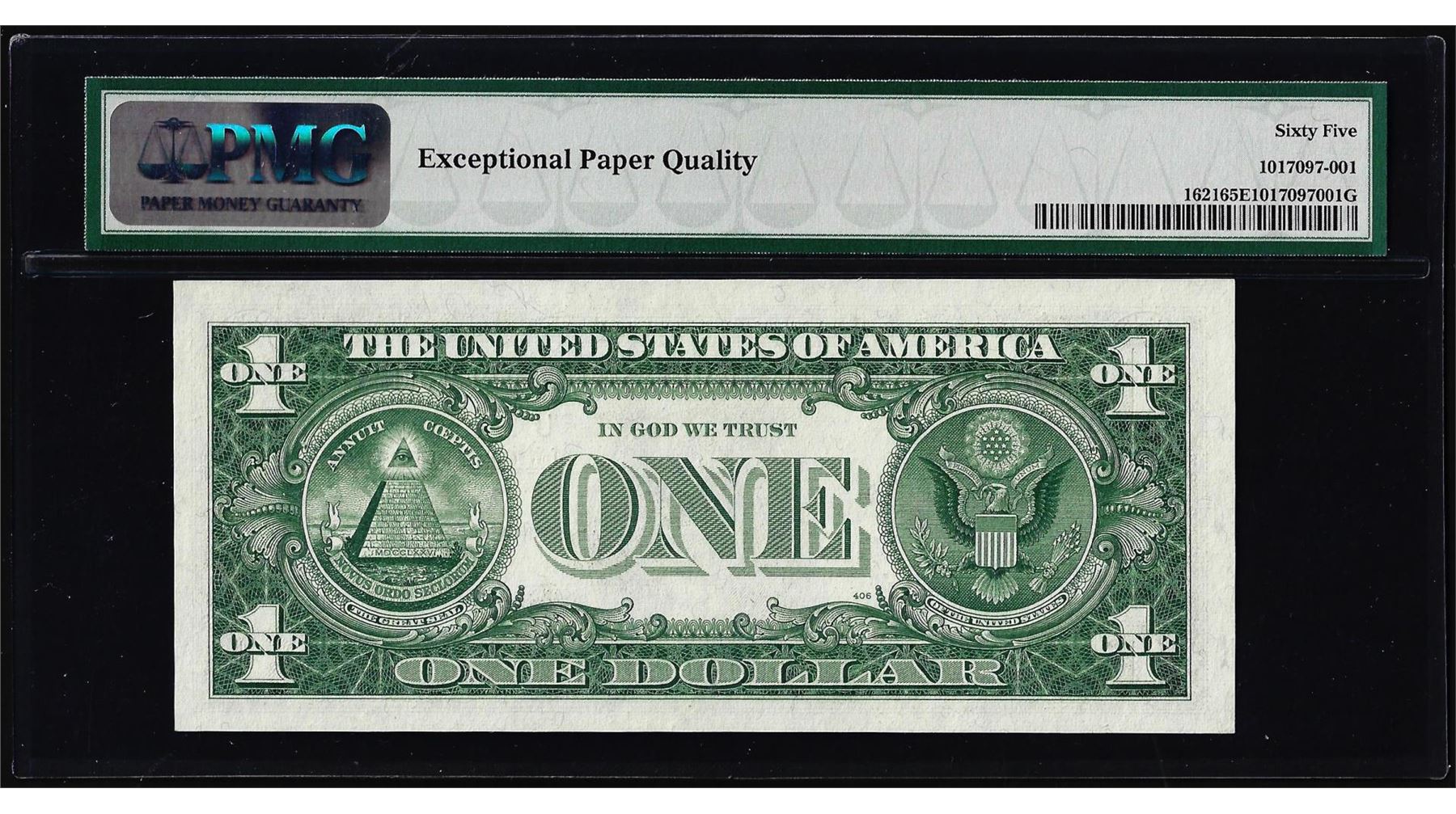 1957B $1 Silver Certificate Note Mismatched Serial Number Error PMG Gem Unc. 65EPQ