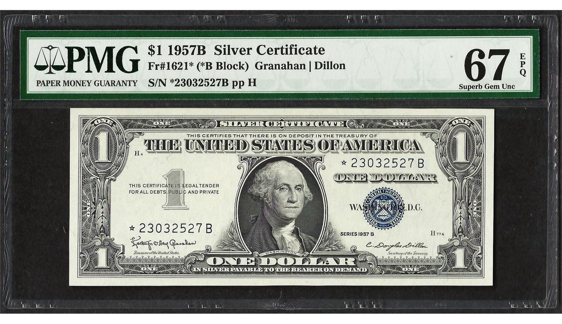 1957B $1 Silver Certificate STAR Note Fr.1621* PMG Superb Gem Uncirculated 67PPQ