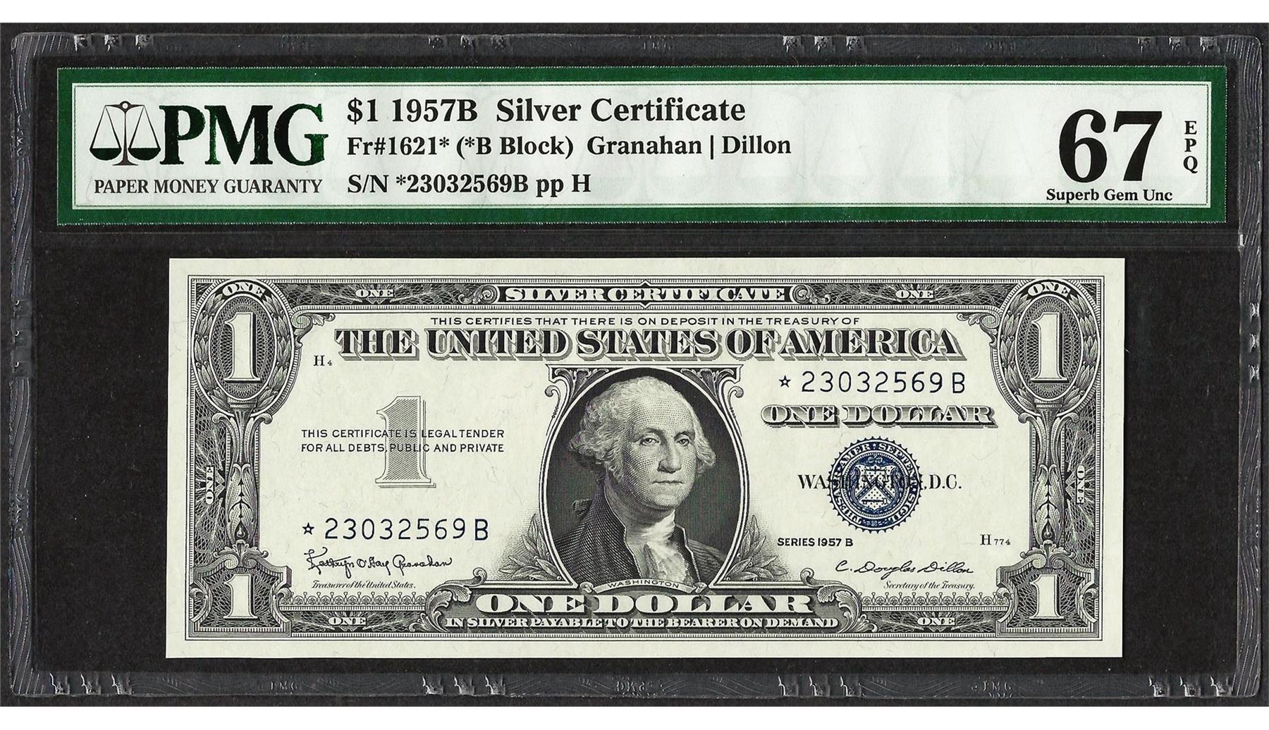 1957B $1 Silver Certificate STAR Note Fr.1621* PMG Superb Gem Uncirculated 67PPQ