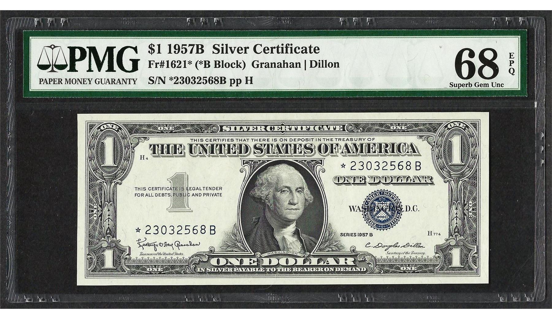 1957B $1 Silver Certificate STAR Note Fr.1621* PMG Superb Gem Uncirculated 68PPQ