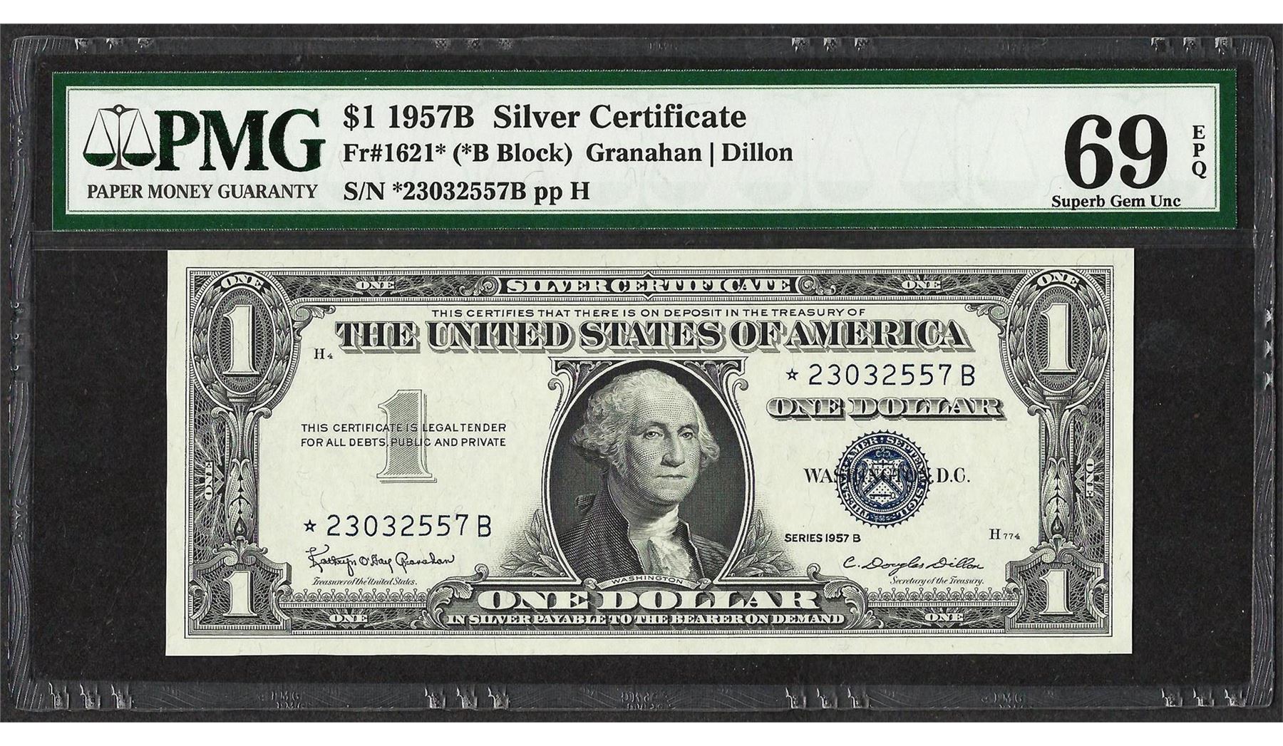 1957B $1 Silver Certificate STAR Note Fr.1621* PMG Superb Gem Uncirculated 69PPQ