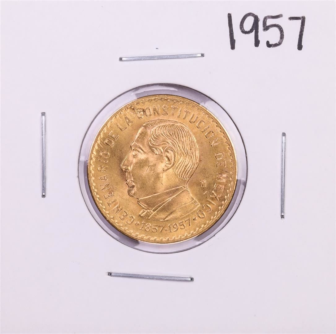 One 1957Mo Mexico Diez Pesos Constitution Centennial Gold Coin.