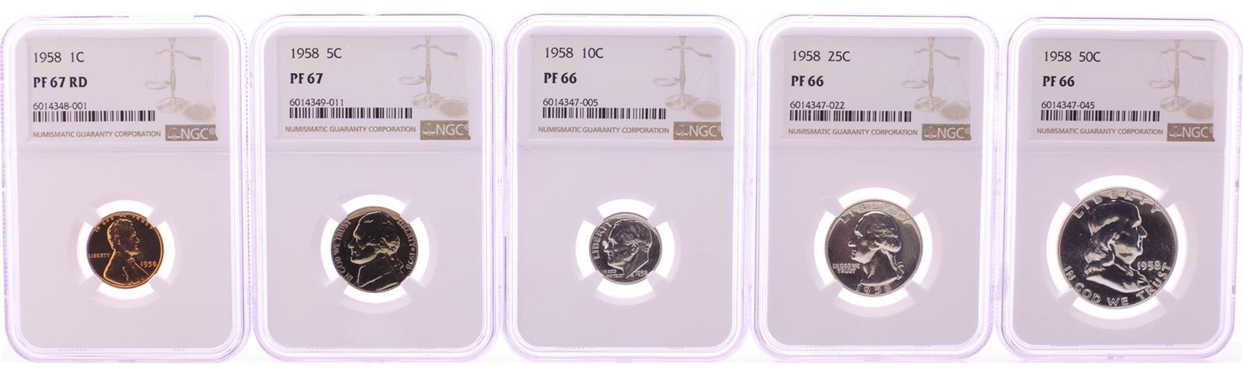 One 1958 (5) Coin Proof Set Graded NGC PF66/67. NGC Certified.