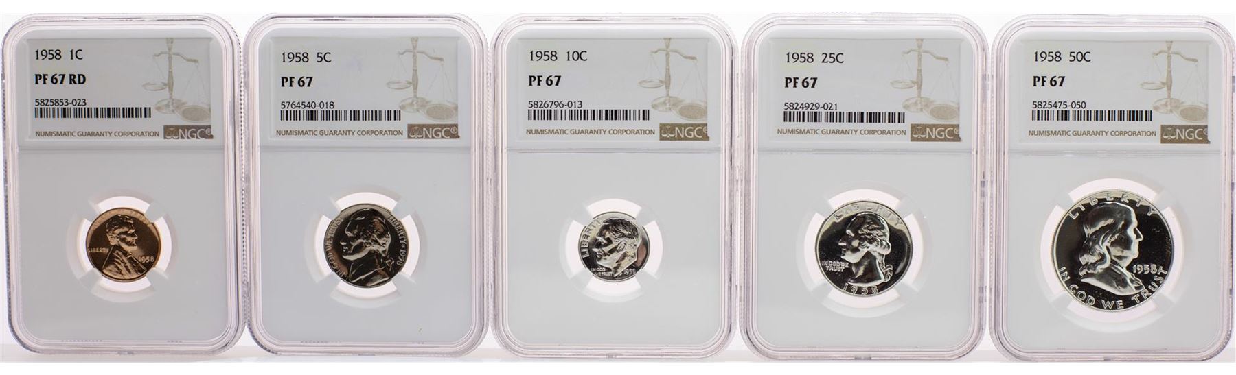 1958 (5) Coin Proof Set Graded NGC PF67