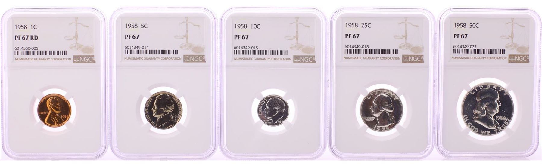 One 1958 (5) Coin Proof Set Graded NGC PF67. NGC Certified.