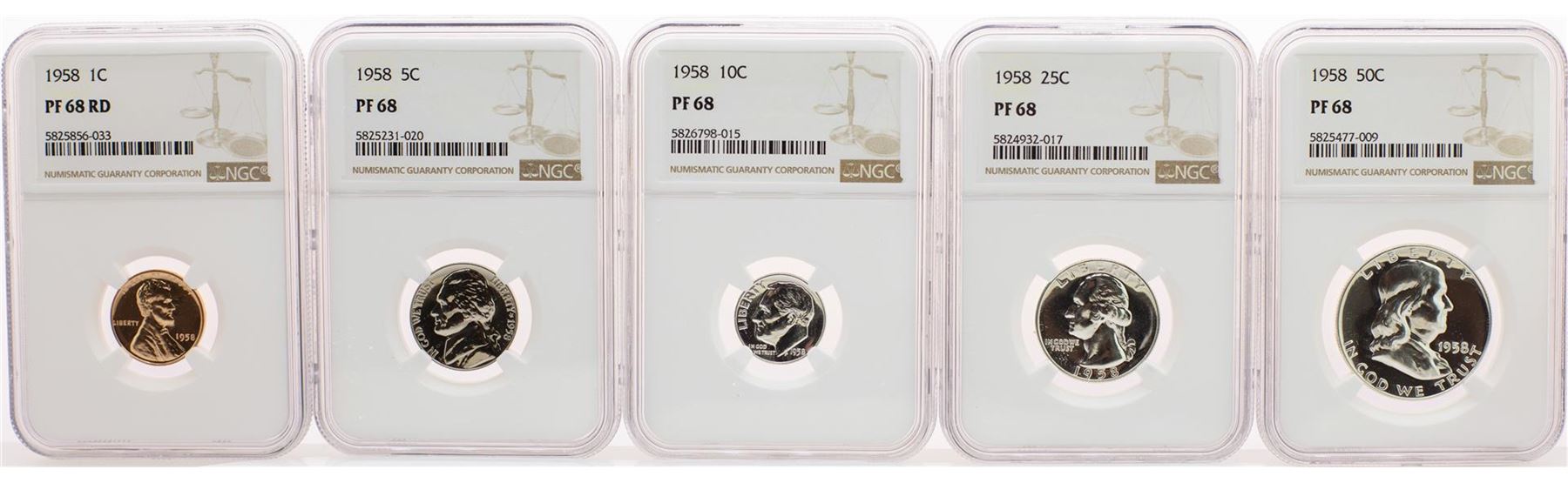 One 1958 (5) Coin Proof Set Graded NGC PF68. NGC Certified.
