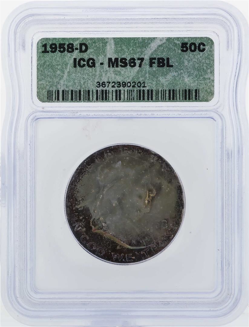 One 1958-D Franklin Half Dollar Coin ICG MS67 FBL. ICG Certified.