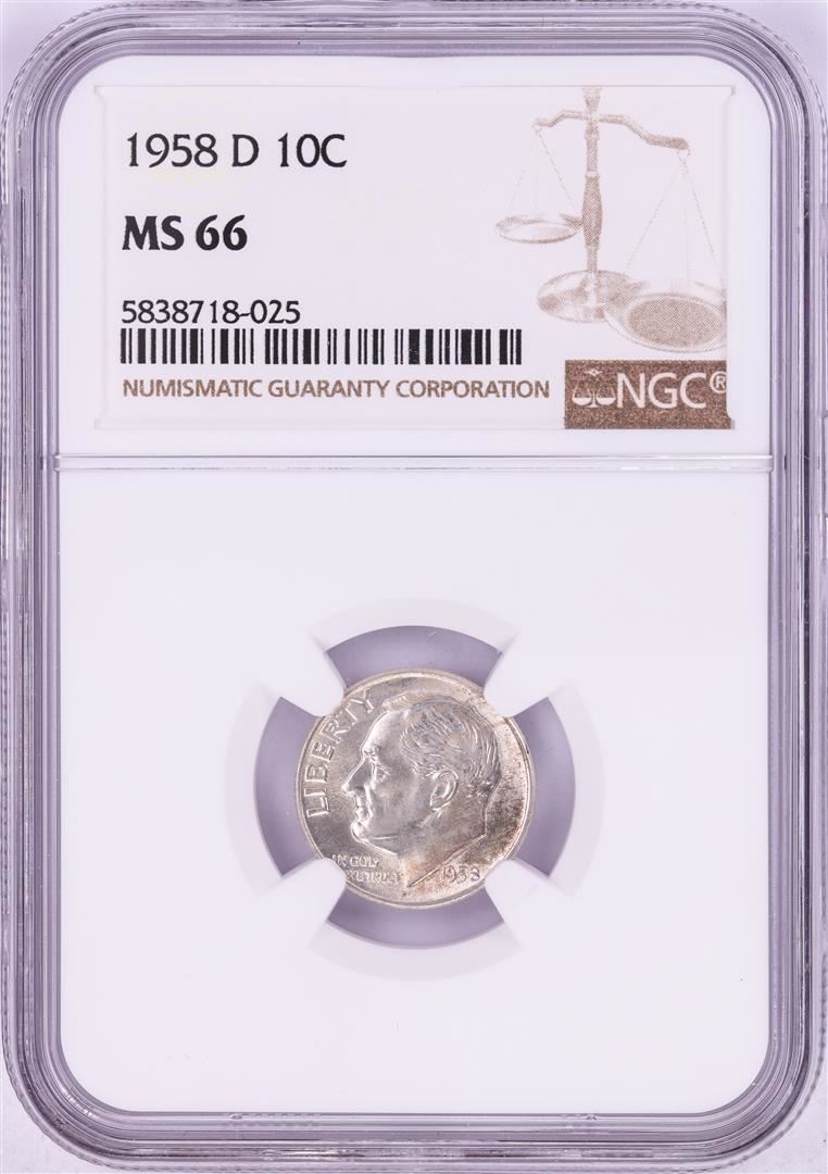 One 1958-D Roosevelt Dime Coin NGC MS66. NGC Certified.