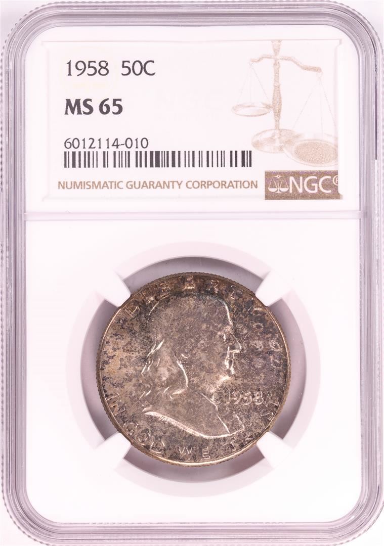 One 1958 Franklin Half Dollar Coin NGC MS65. NGC Certified.