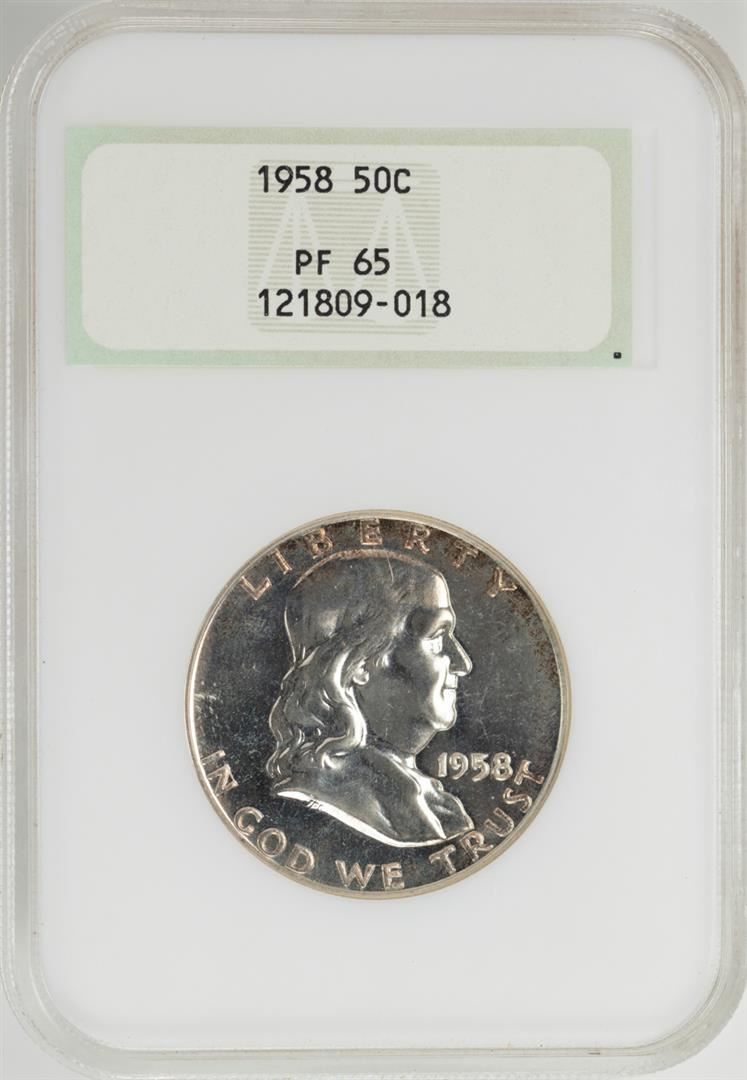 One 1958 Proof Franklin Half Dollar Coin NGC PF65. NGC Certified.