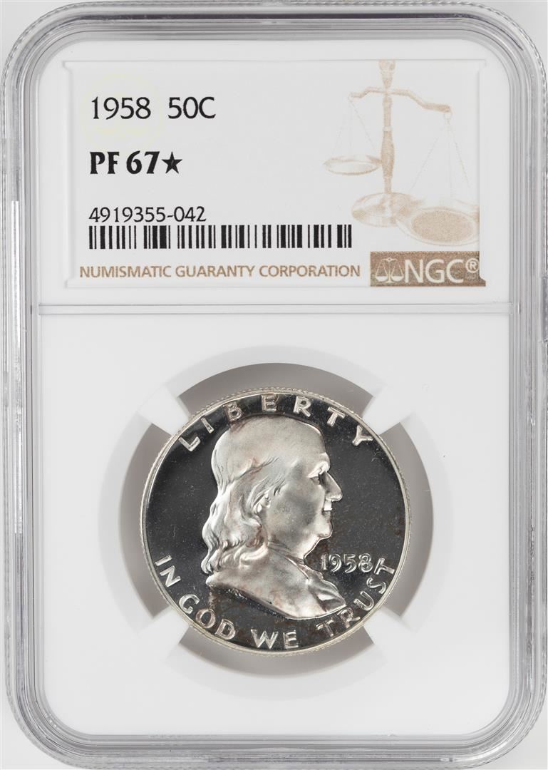 One 1958 Proof Franklin Half Dollar Coin NGC PF67 STAR. NGC Certified.