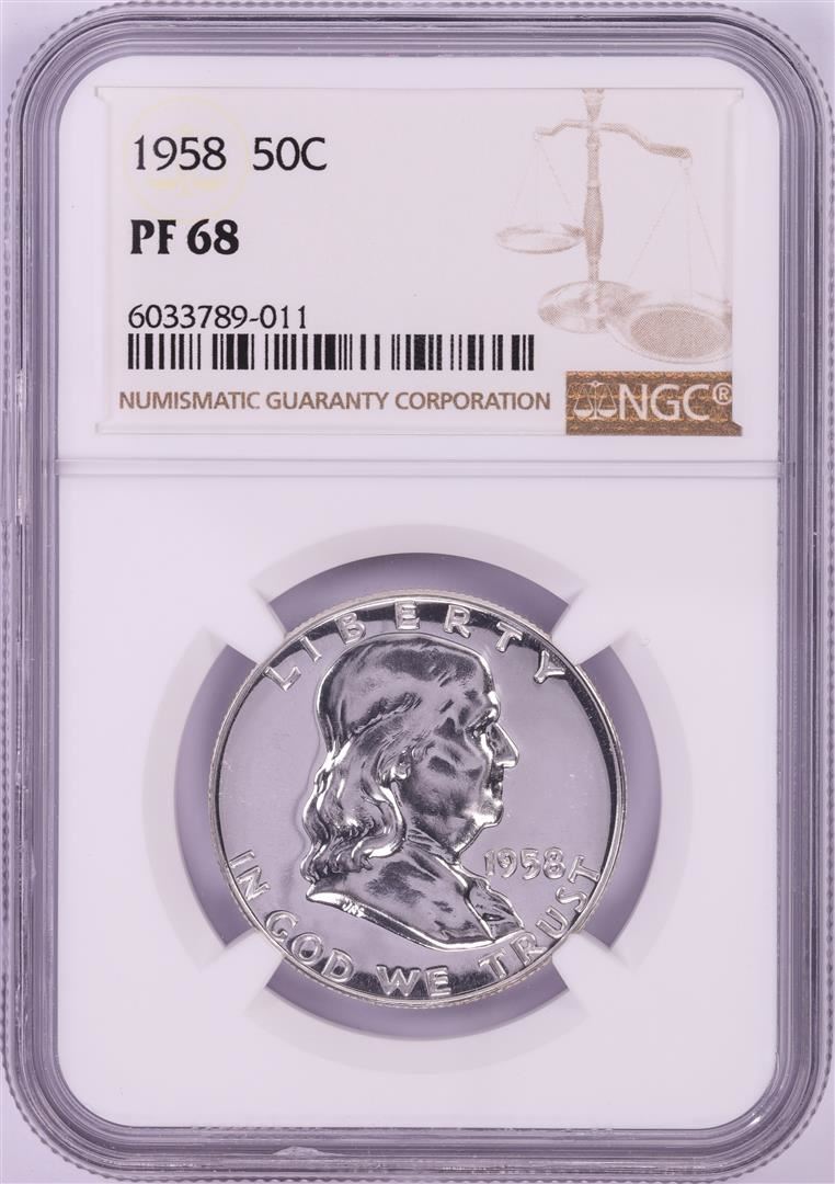 One 1958 Proof Franklin Half Dollar Coin NGC PF68. NGC Certified.