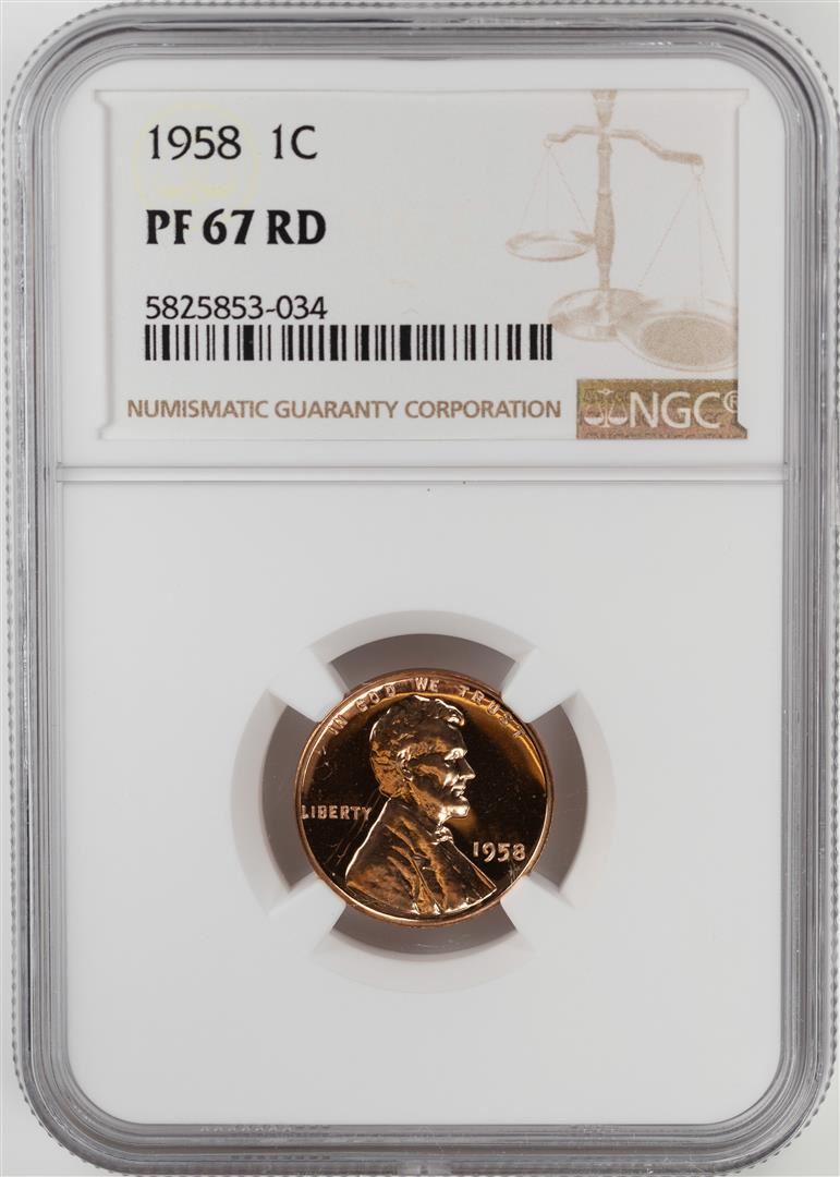 One 1958 Proof Lincoln Wheat Cent Coin NGC PF67RD. NGC Certified.