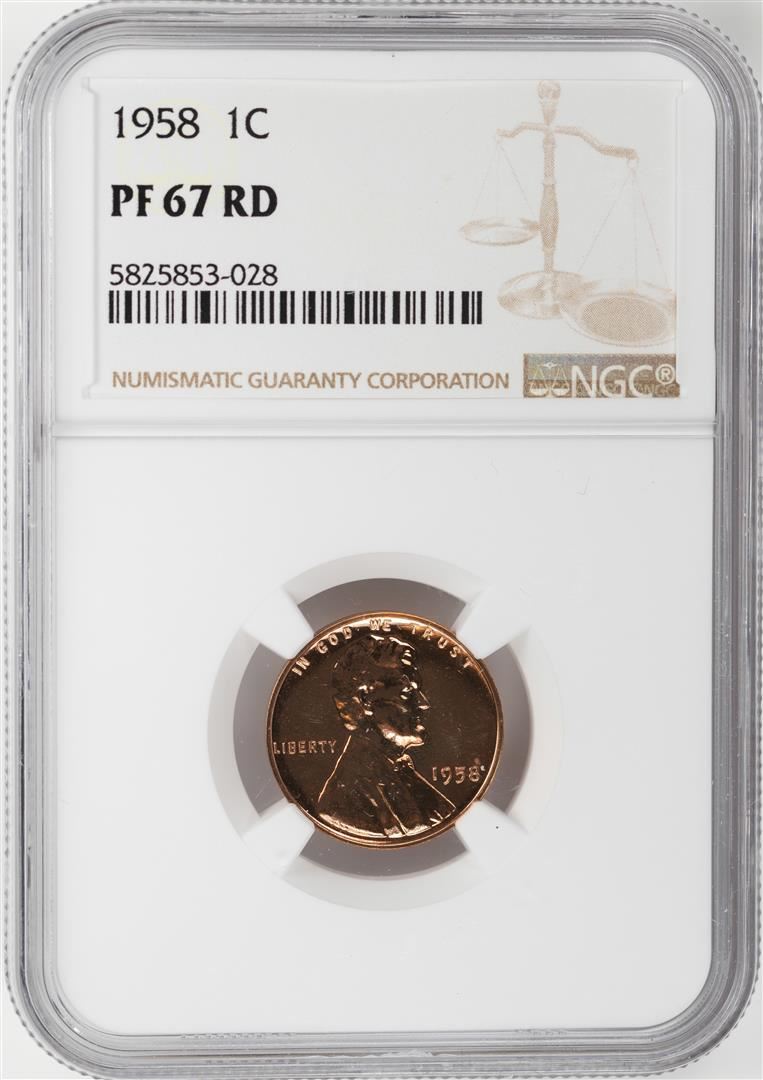One 1958 Proof Lincoln Wheat Cent Coin NGC PF67RD. NGC Certified.