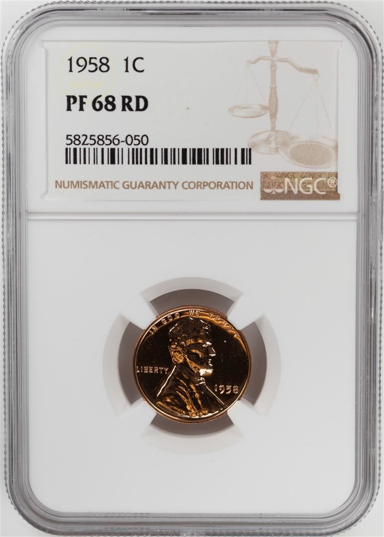 One 1958 Proof Lincoln Wheat Cent Coin NGC PF68RD. NGC Certified.