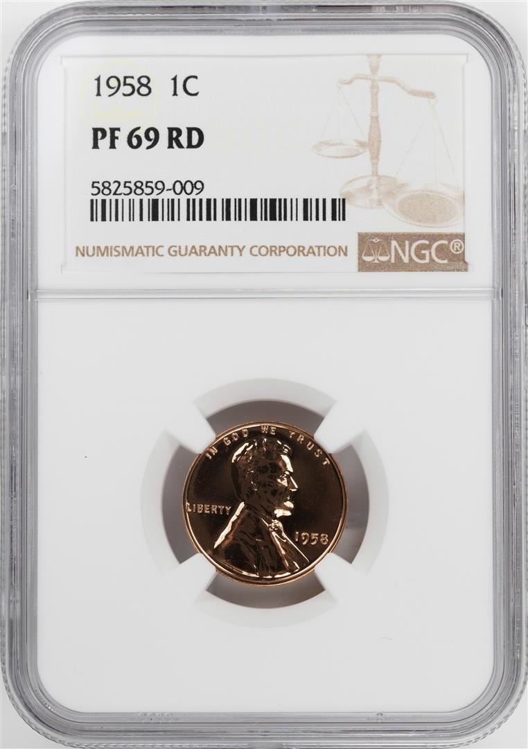 One 1958 Proof Lincoln Wheat Cent Coin NGC PF69RD Graded Top Pop. NGC Certified.