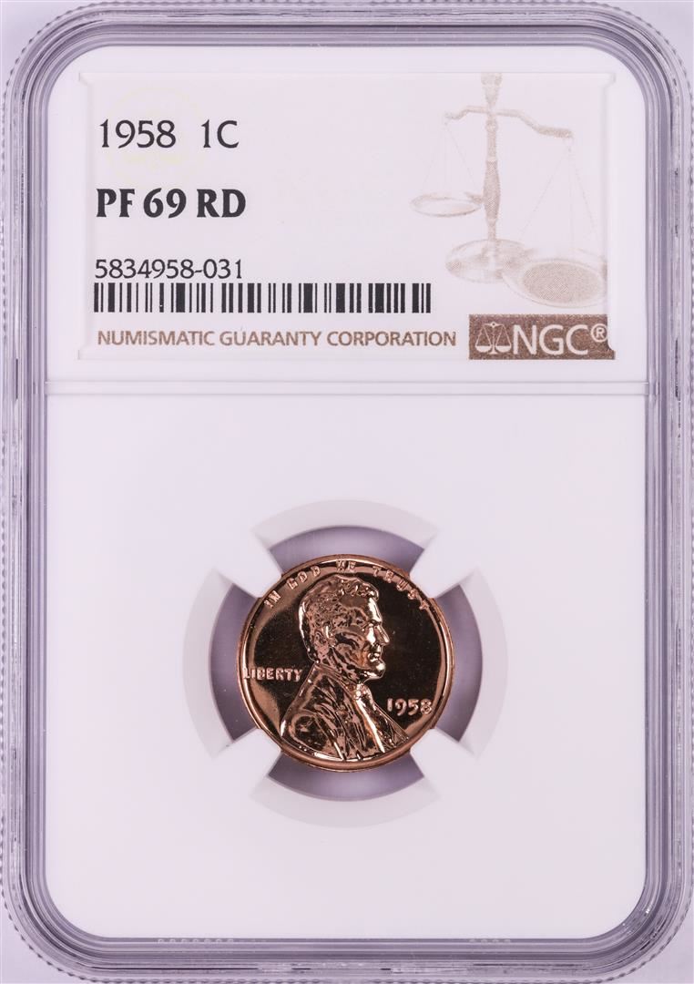One 1958 Proof Lincoln Wheat Cent Coin NGC PF69RD. NGC Certified.