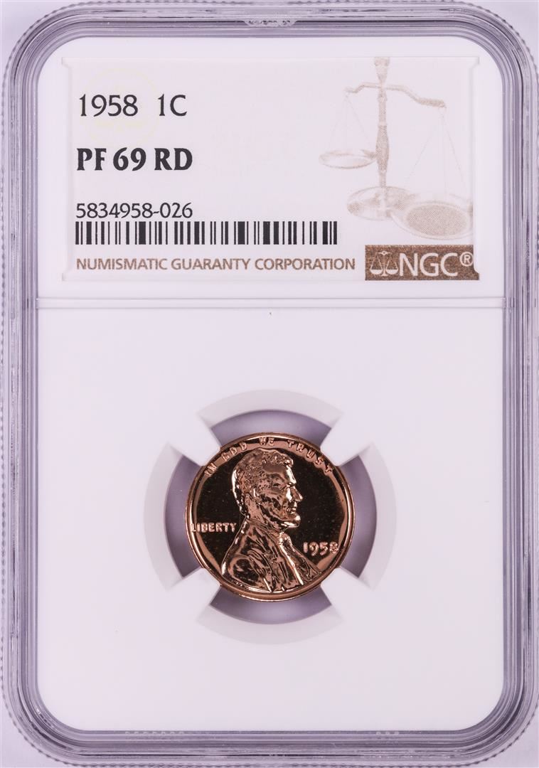 One 1958 Proof Lincoln Wheat Cent Coin NGC PF69RD. NGC Certified.