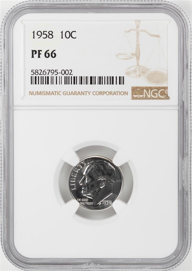 One 1958 Proof Roosevelt Dime Coin NGC PF66. NGC Certified.
