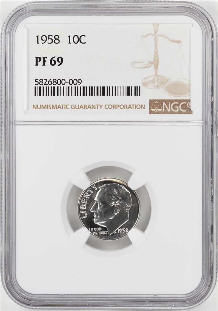 One 1958 Proof Roosevelt Dime Coin NGC PF69. NGC Certified.