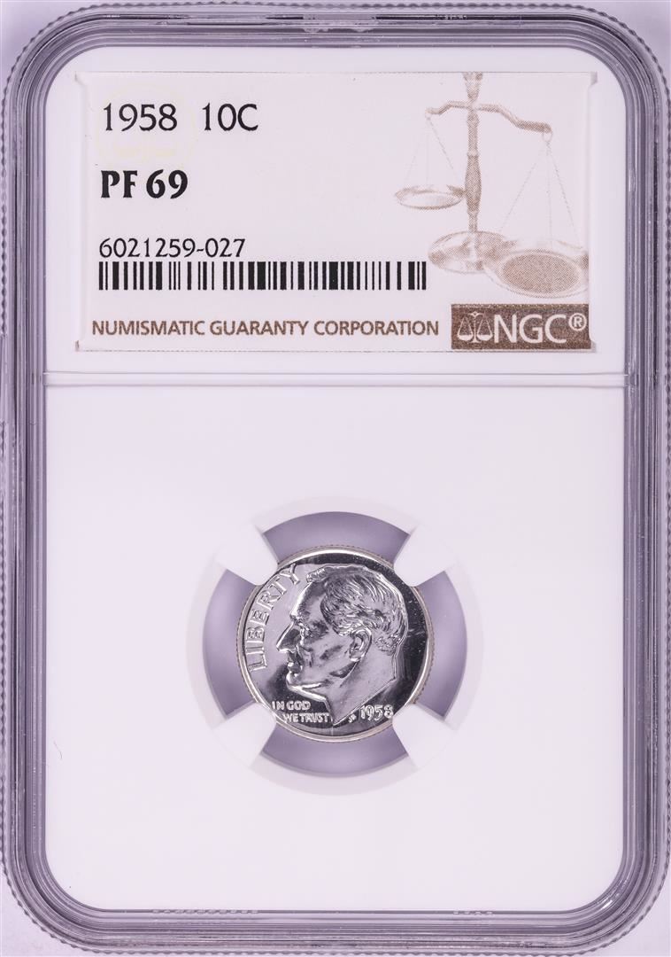One 1958 Proof Roosevelt Dime Coin NGC PF69. NGC Certified.