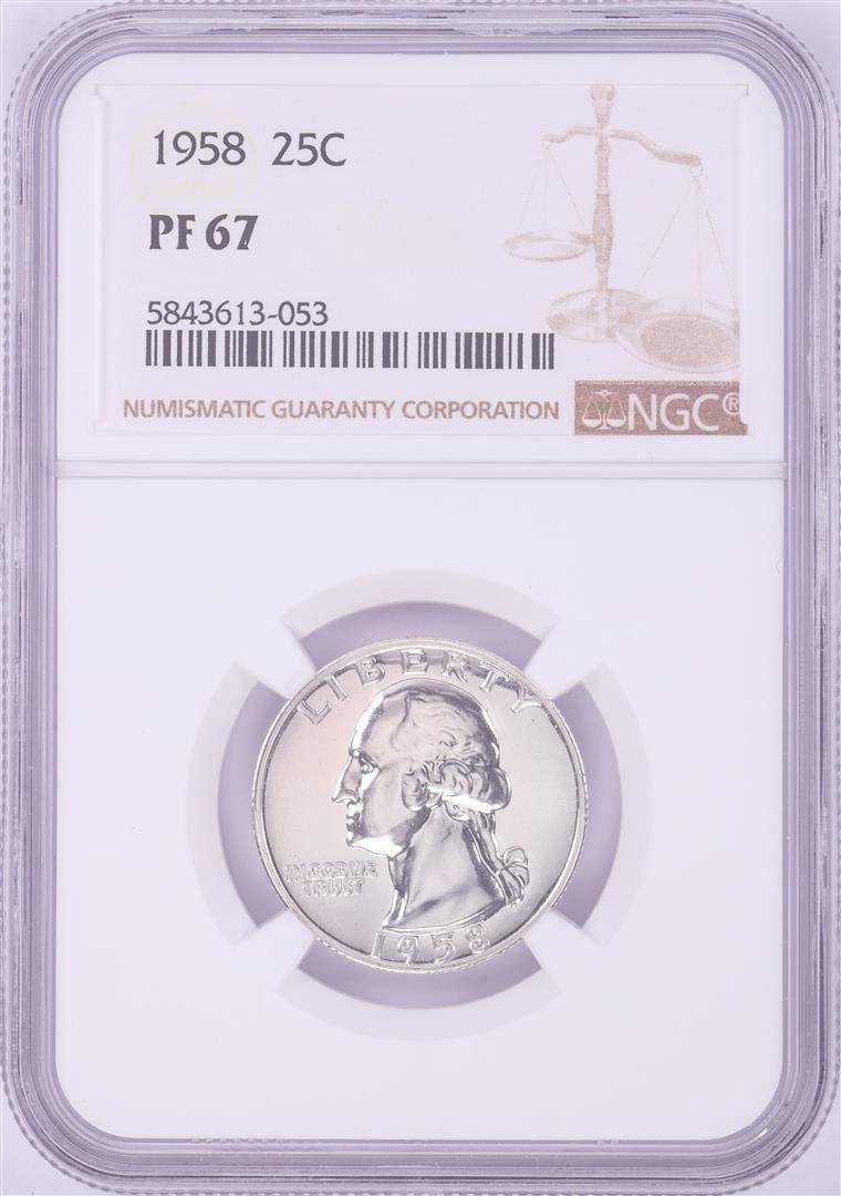 One 1958 Proof Washington Quarter Coin NGC PF67. NGC Certified.