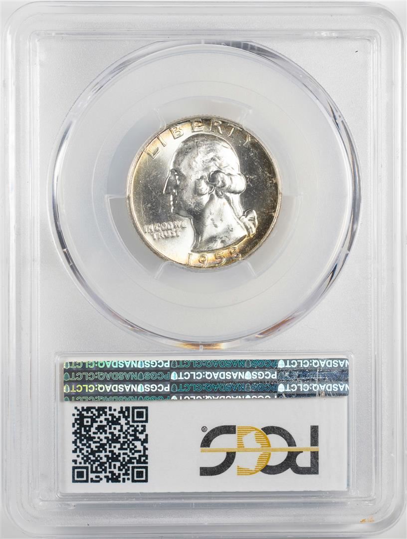One 1958 Washington Quarter Coin PCGS MS63 Amazing Toning. PCGS Graded.
