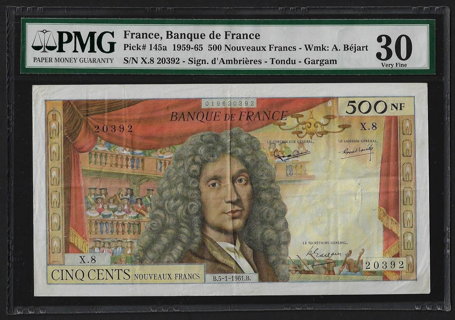 1959-65 France 500 Nouveaux Francs Currency Note Pick# 145a PMG Very Fine 30