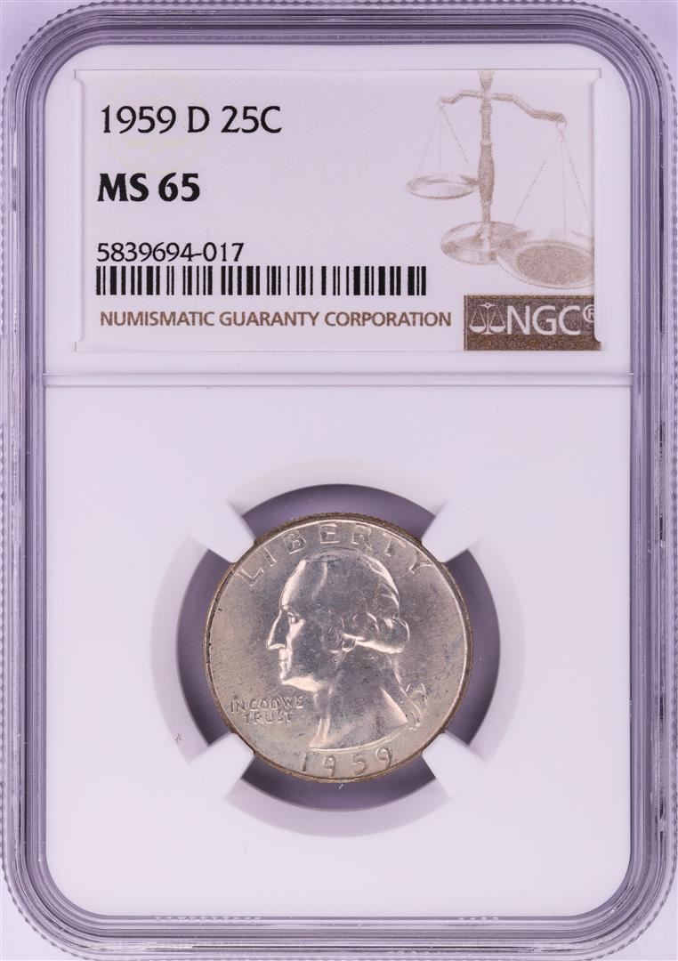 One 1959-D Washington Quarter Coin NGC MS65. NGC Certified.