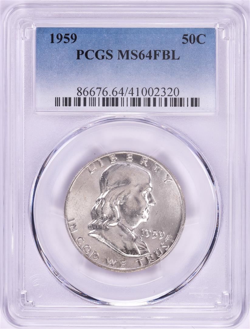 One 1959 Franklin Half Dollar Coin PCGS MS64FBL. PCGS Graded.