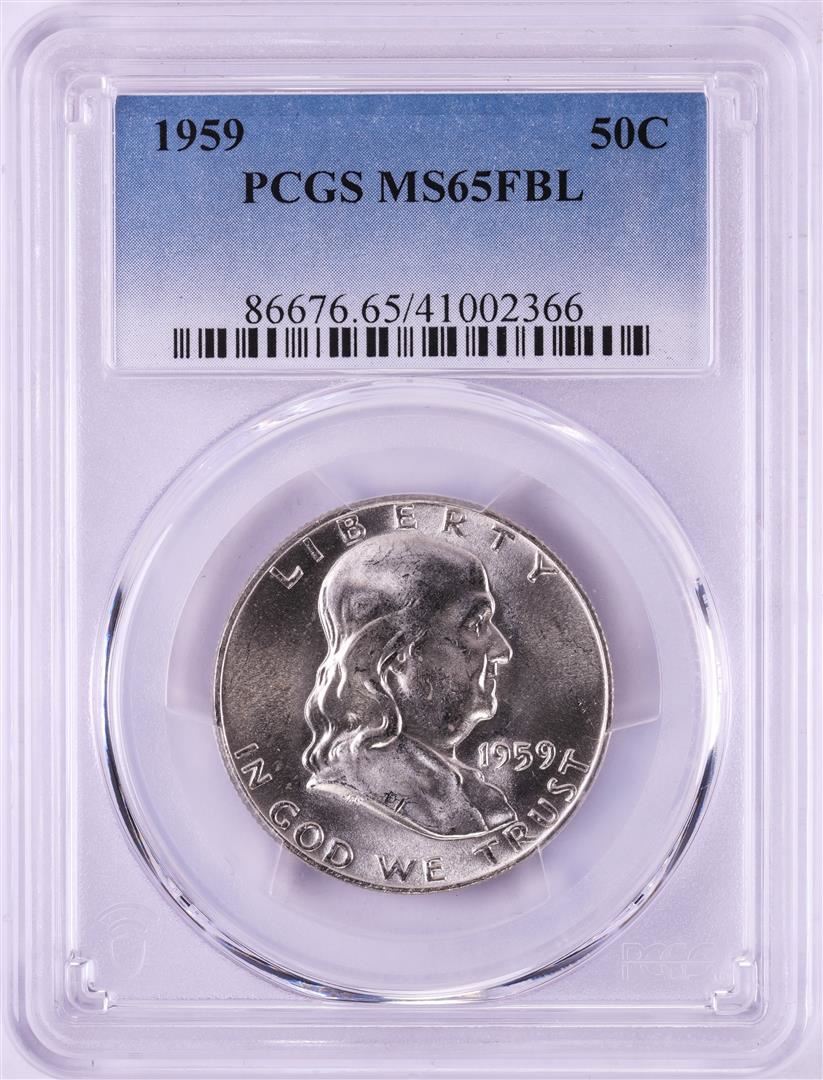 One 1959 Franklin Half Dollar Coin PCGS MS65FBL. PCGS Graded.