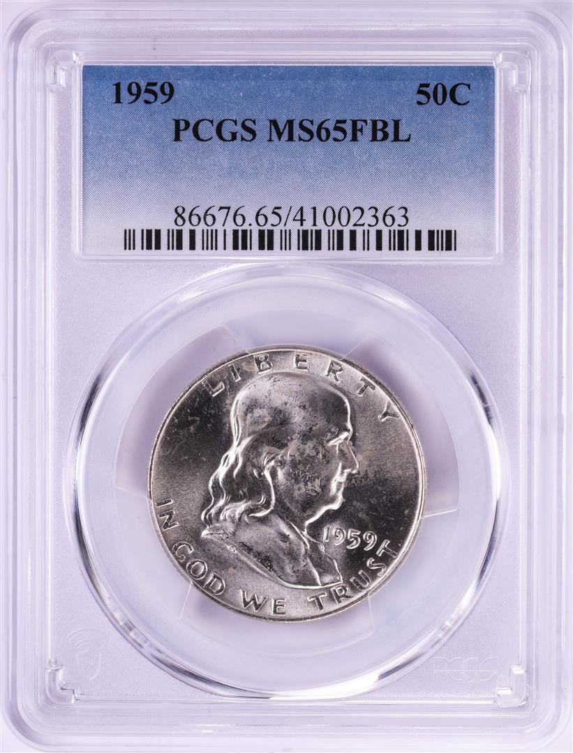 One 1959 Franklin Half Dollar Coin PCGS MS65FBL. PCGS Graded.