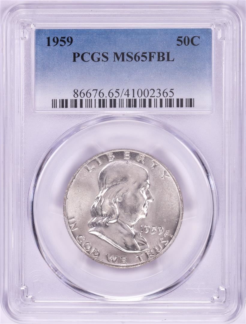 One 1959 Franklin Half Dollar Coin PCGS MS65FBL. PCGS Graded.