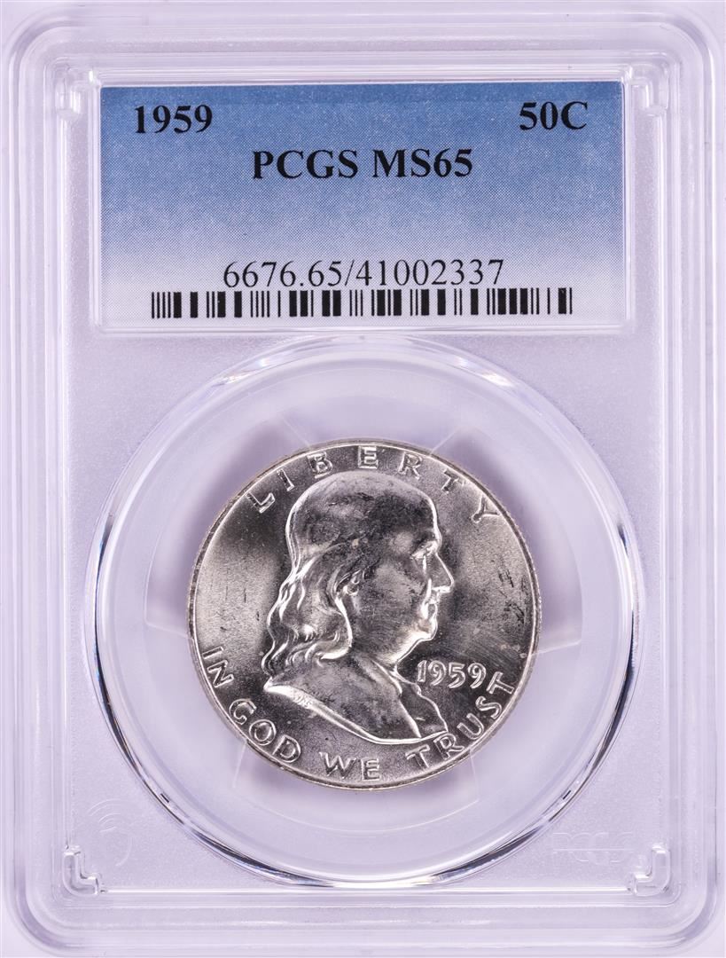 One 1959 Franklin Half Dollar Coin PCGS MS65. PCGS Graded.