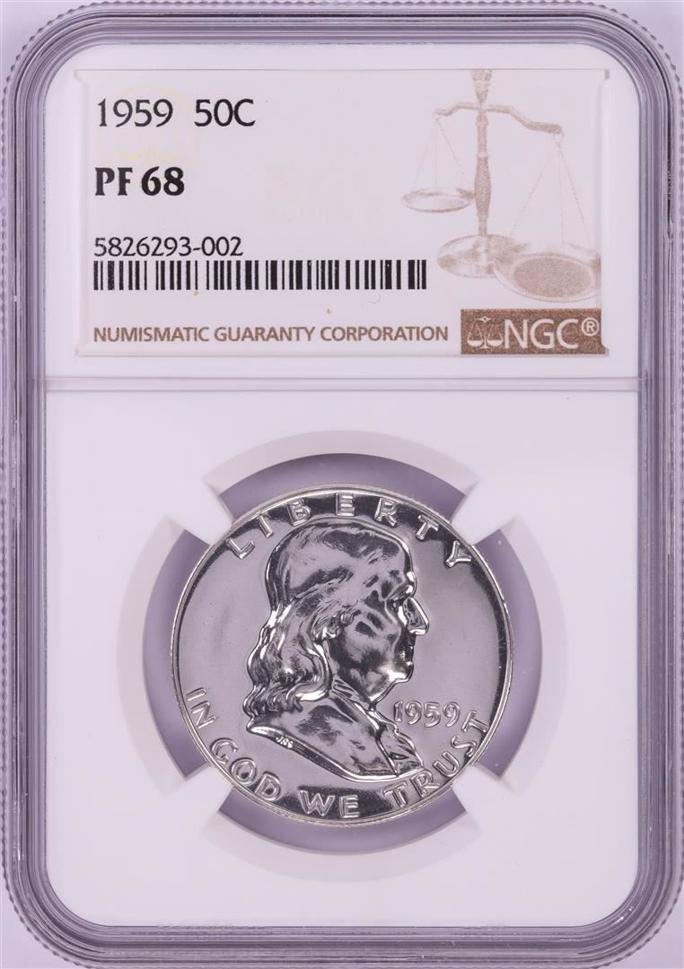 One 1959 Proof Franklin Half Dollar Coin NGC PF68. NGC Certified.