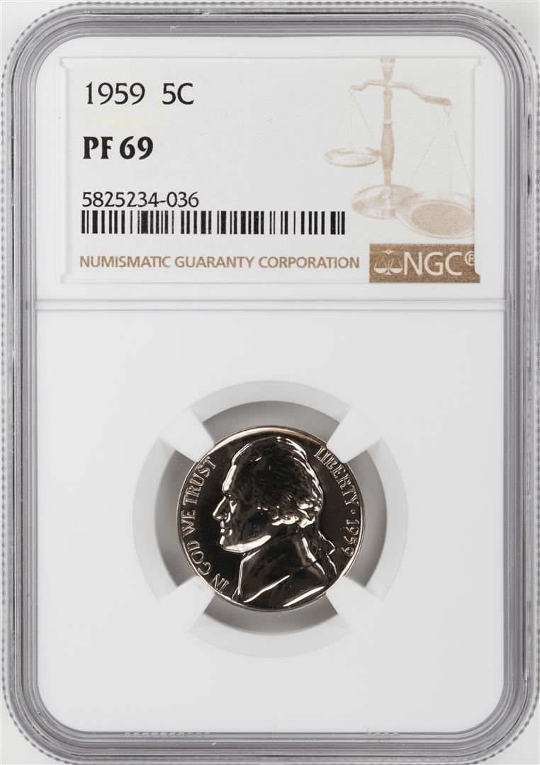 One 1959 Proof Jefferson Nickel Coin NGC PF69. NGC Certified.