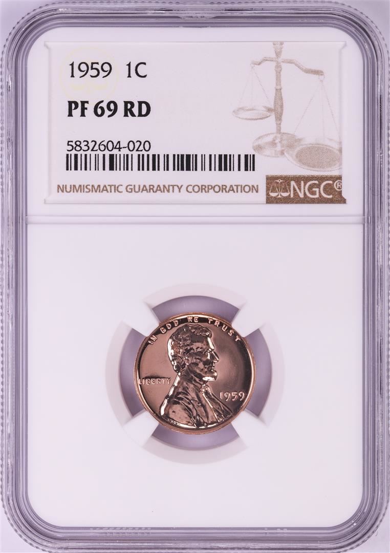 One 1959 Proof Lincoln Memorial Cent Coin NGC PF69RD. NGC Certified.
