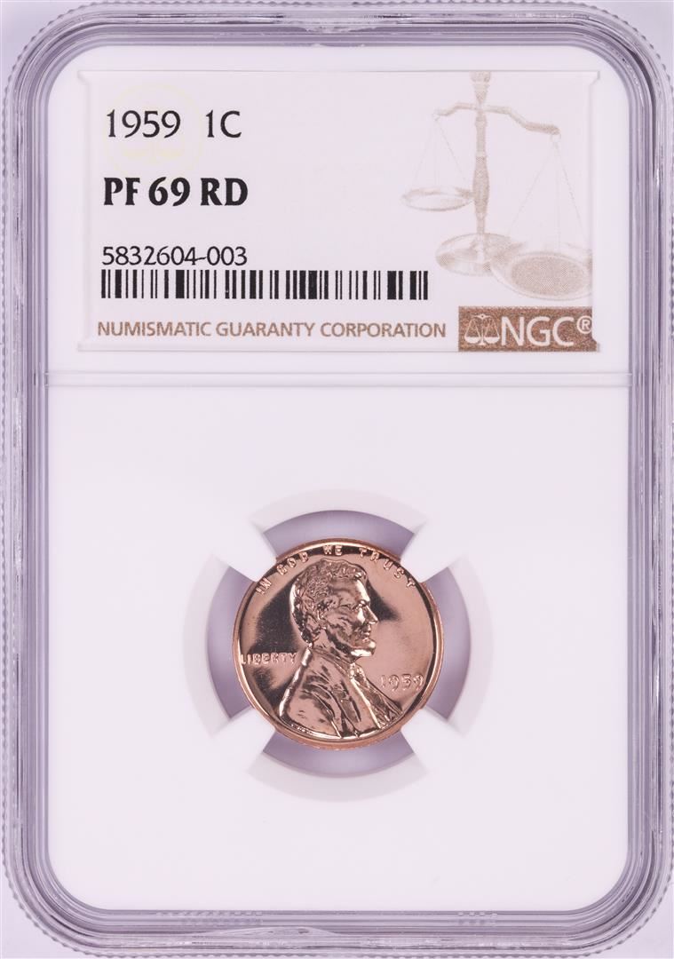 One 1959 Proof Lincoln Memorial Cent Coin NGC PF69RD. NGC Certified.