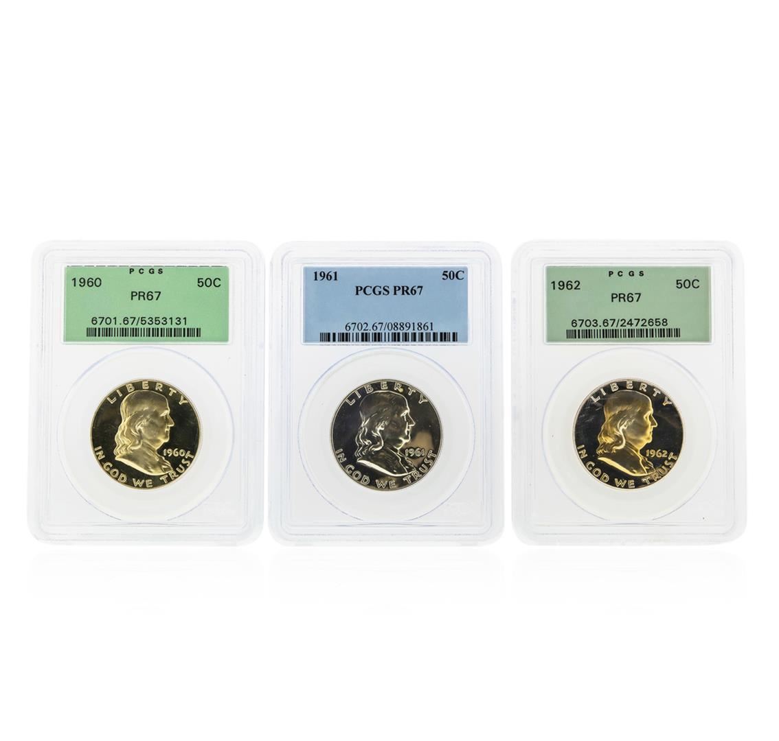 One 1960-1962 Franklin Half Dollar Coin PCGS Graded PR67. PCGS Graded.