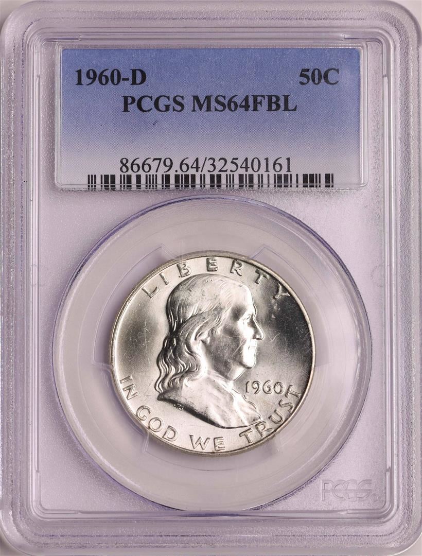 One 1960-D Franklin Half Dollar Coin PCGS MS64FBL. PCGS Graded.