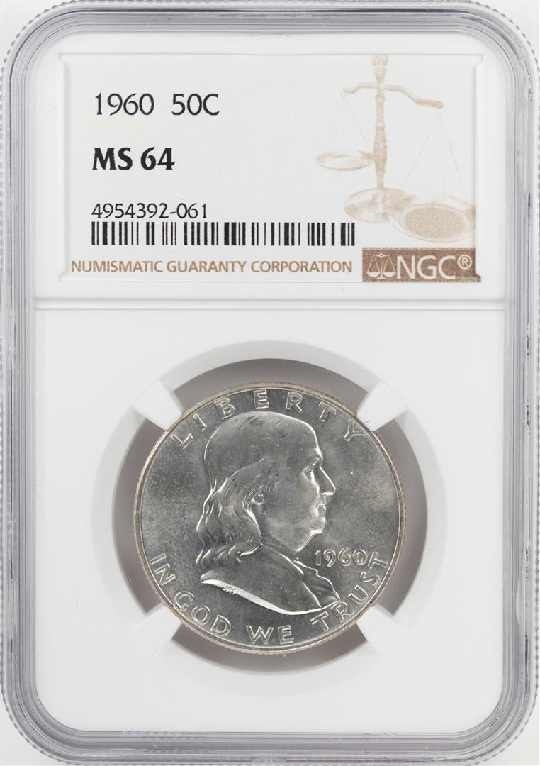 One 1960 Franklin Half Dollar Coin NGC MS64. NGC Certified.