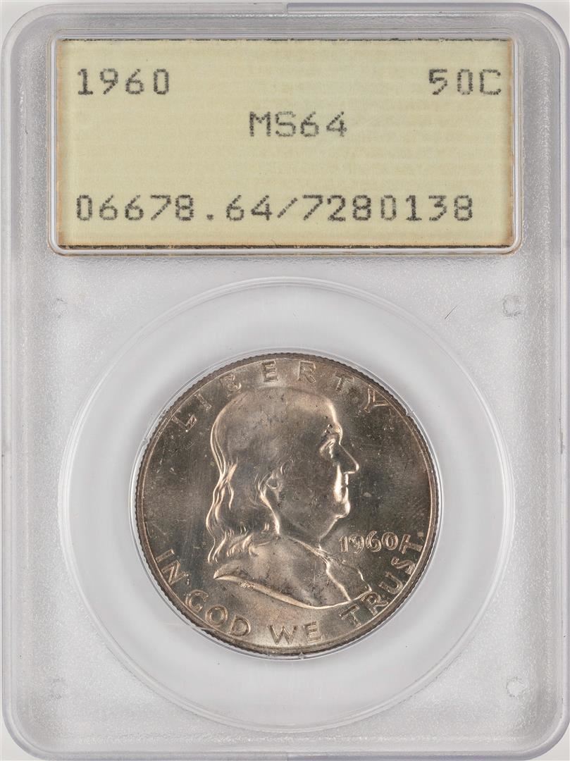 1960 Franklin Half Dollar Coin PCGS MS64 Old Green Rattler